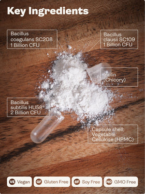 Visit our virtual store and try our Spore-Based Probiotic supplement containing Bacillus subtilis HU58, Bacillus coagulans SC208, and Bacillus clausii SC109.