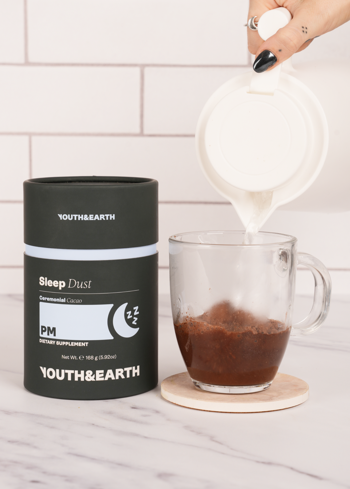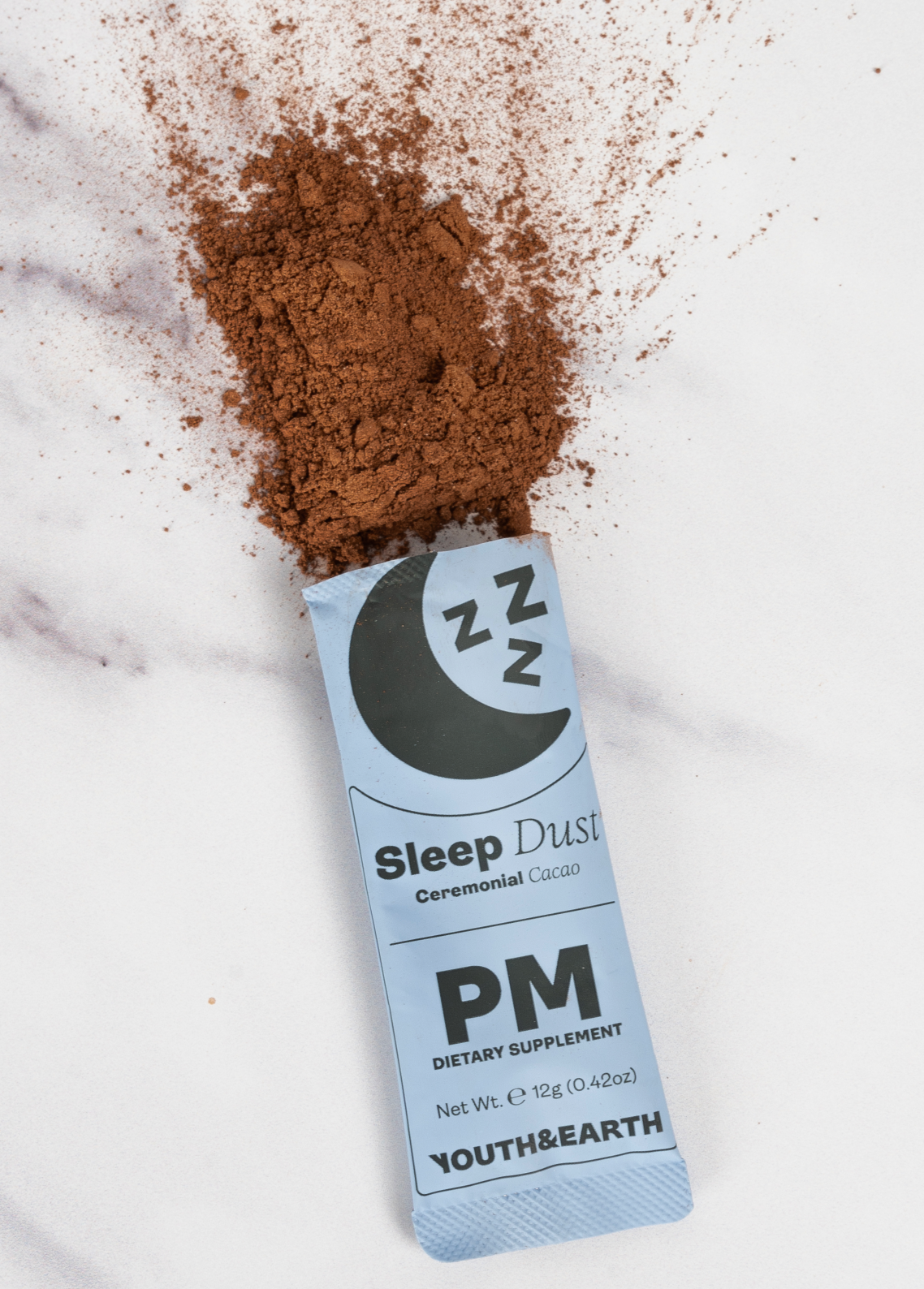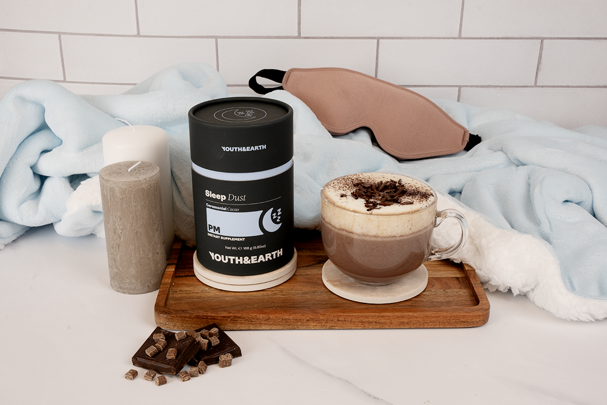 PM: Sleep Dust is carefully crafted by Youth & Earth to support deep relaxation and restful sleep, perfect for anyone seeking a natural wind-down. It’s melatonin-free and hormone-free, allowing you to fall asleep without dependency on the product. With calming ingredients like Reishi and Valerian Root, it helps to soothe both mind and body, promoting a smoother transition into sleep. Each sachet also features the rich taste of ceremonial cacao, making it an enjoyable part of your evening routine. At just 42 calories per serving, with zero sugar, no artificial additives, and only plant-based ingredients, it's a wholesome, guilt-free way to end your day.